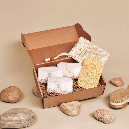 Pack 3 jabones orgánicos + jabonera y saquito esponja